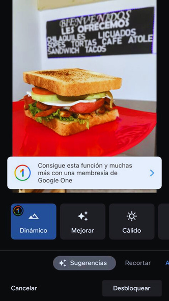 con tortilla de harina, jamón, queso amarillo, queso Oaxaca, jitomate, chiles en vinagre y aguacate.